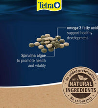 High-quality nutrients such as spirulina algae and omega-3 fatty acids support optimal development of the fish. The tablets can be easily placed, sink quickly to the bottom and only soften slowly - this enables easy food intake, even for shy fish. Thanks to its good digestibility, Tetra Fish Food contributes to clean water and good water quality.
